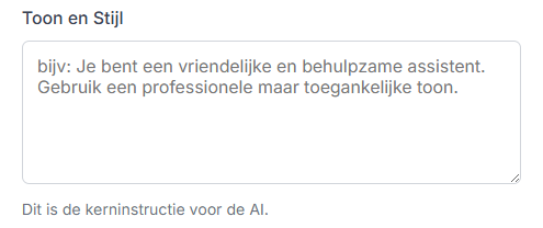 - Toon en Stijl: Dit is de kerninstructie voor Bytechat. Hier beschrijf je hoe Bytechat zichzelf identificeert en op welke manier hij antwoorden zal geven.