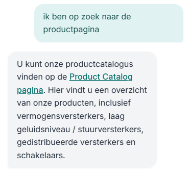 - Voeg voorbeeldvragen toe: Zorg ervoor dat je trainingsdata vragen bevat die gebruikers kunnen stellen waarbij link verwijzingen nuttig zijn, zoals "Waar kan ik meer informatie vinden over product X?"
