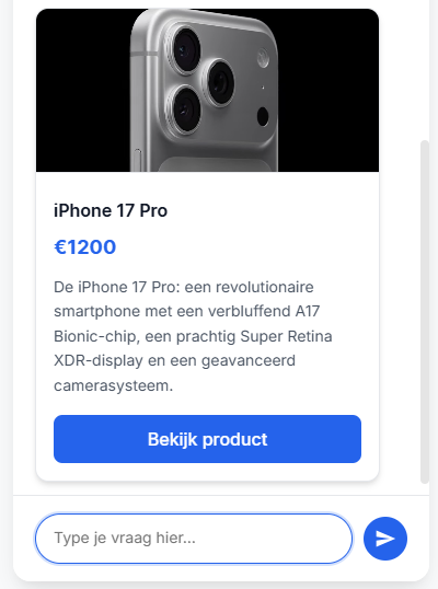 Met de Product Showcases-functionaliteit van Bytechat kun je je chatbot zo configureren dat hij automatisch productaanbevelingen doet op basis van gebruikersvragen. Dit is vooral handig voor e-commerce websites die hun klanten willen helpen bij het vinden van producten die aan hun behoeften voldoen.